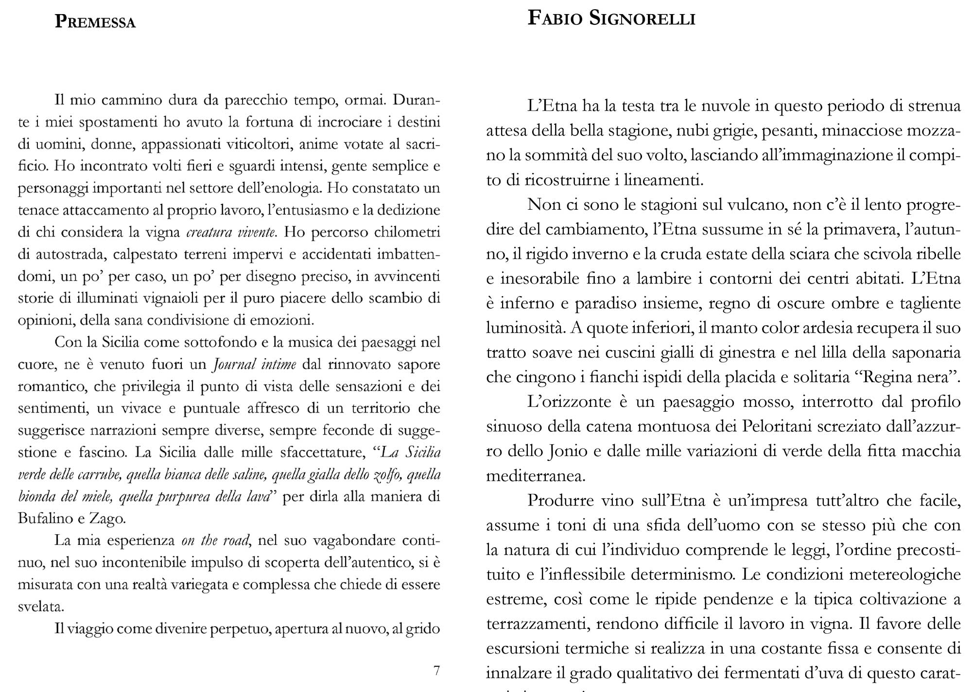 Un’antologia di racconti dedicati al vino, scandita dal tempo delle stagioni e dall’instancabile operosità del mondo che vi abita intorno. Un testo che esce fuori dai tecnicismi delle classiche guide enologiche per collocarsi sul piano della narrazione di luoghi, persone, situazioni, miti e tradizioni. E lo fa utilizzando il linguaggio evocativo e immaginifico di chi crede nella possibilità di un riscatto e si radica nella forza espressiva della parola. Tante storie che nascono dal forte legame dell’autrice con la sua terra, un legame che l’ha portata a leggere nei meandri di un tessuto sociale ed economico sospeso tra istantanee che ritraggono l’oggi, un presente pieno, percepibile nella “capacità di vivere l’attimo, ogni attimo senza sacrificarlo al futuro” come scrive Claudio Magris nel suo L’infinito viaggiare.