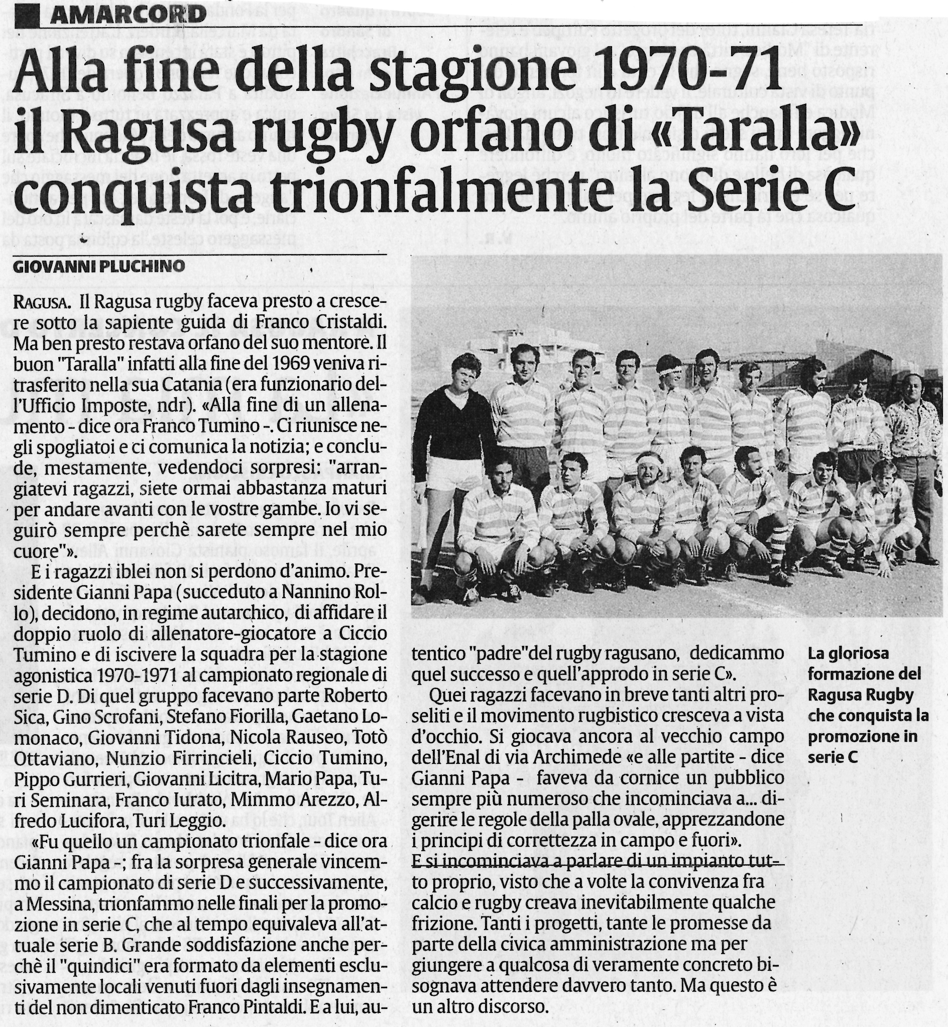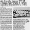 Sembra difficile crederlo, però il rugby dei primi anni, quello a marchio “Pintaldi”, era romantico. Sì, romantico: ti sentivi un pioniere, ti guardavano “strano” ma quasi ammirati, l’odore forte di sifcamina nello spogliatoio prima della partita era il legame complice che ci accomunava, esser riconosciuti in via Roma scaldava il cuore, partire al mattino per la trasferta era come partire per un’avventura.