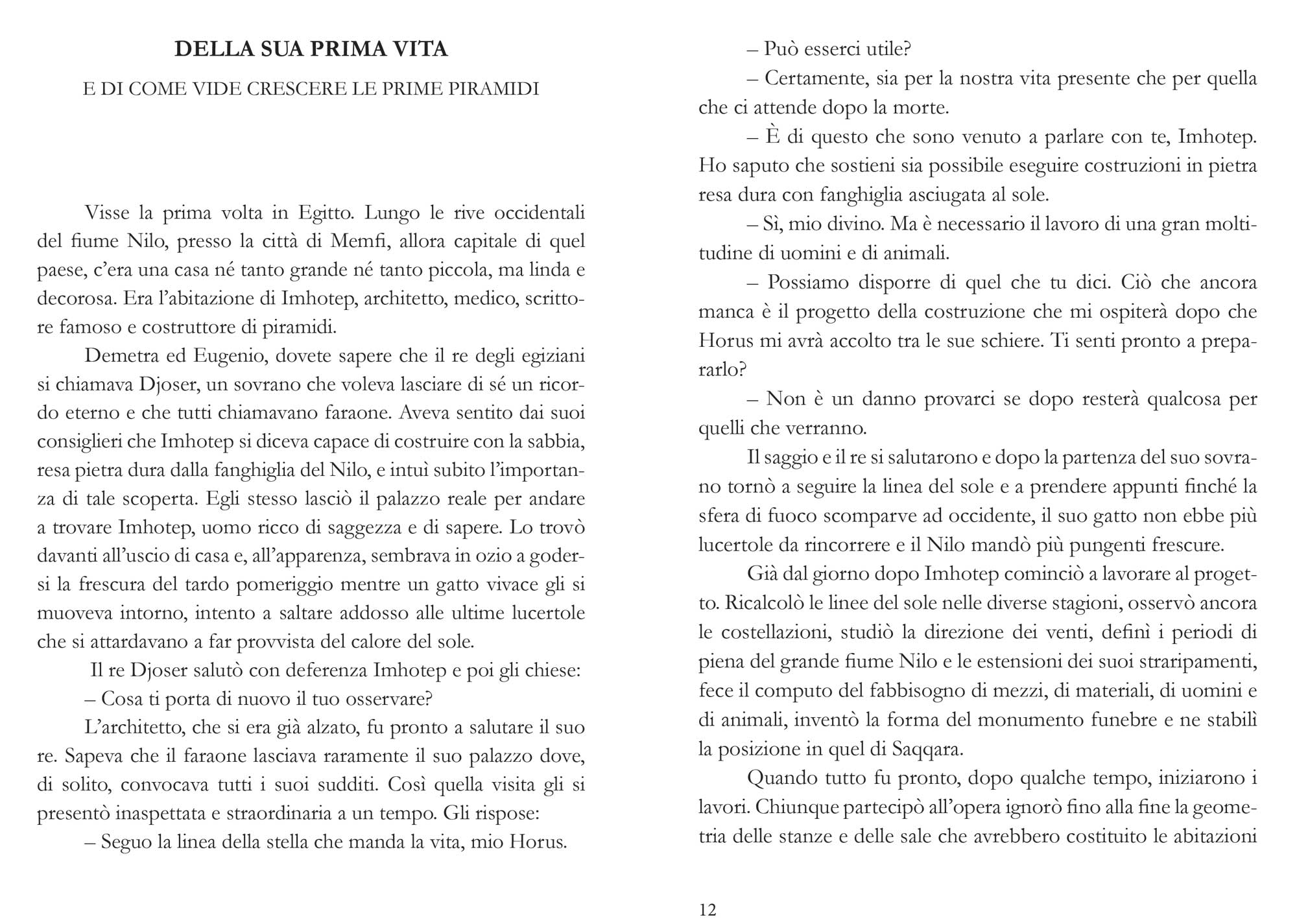 Storia di un gatto che cambiò sette pelli è una continuazione ideale di Ascolta, Demetra, una raccolta di storielle per bambini che qualche anno fa pubblicai come trasposizione scritta di “cunta” per mia figlia. Volevo distoglierla dalla visione invasiva e persuasiva dei programmi televisivi e le dicevo: “Teniamo spenta la televisione, almeno quando siamo a tavola; ti racconterò altre storie”. La “Storia del gatto” voleva essere un’altra di quelle storielle che le andavo raccontando. Intanto ed inevitabilmente mia figlia cresceva. Forse incominciavano a darle noia le mie storie e così, conclusa la raccolta di Ascolta e non essendo ancora conclusa la Storia di un gatto, ho deciso di continuare nella scrittura di questa sorta di singolare, plurale e molto parziale storia dell’umanità, silenziosamente osservata dagli occhi e dalla sensibilità di un gatto che ha la ventura di reincarnarsi sempre nelle sembianze di un gatto, nonostante la sua grande voglia di rinascere, almeno una volta, in quelle di un uomo.